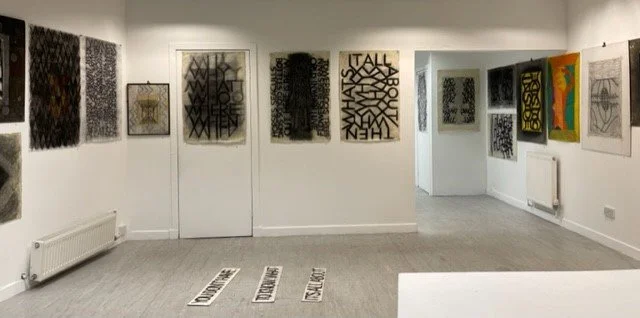 I’ve often used words and/or text in drawing but, for a time at least, they appear to have taken over, to become the main building block of the image on paper and spell out what the drawings are about Statements – questions - no answers or resolutions but, on the positive side, the fact of wonder.